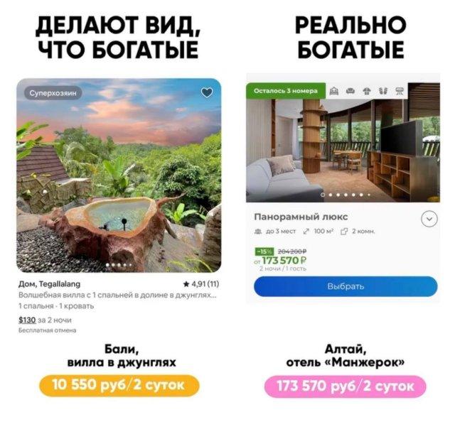 Отдых в Томской области стоит дороже, чем в Дубае! Цены на российские туристические направления окончательно обогнали зарубежные, например: домик в Новосибирской области может обойтись в три раза дороже, чем апартаменты в Куршевеле. Другое пример: двое суток на вилле на Бали стоят в 15 раз дешевле, чем проживание в отеле на Алтае.
