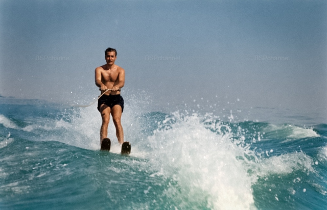 2. Шах Ирана Мухаммед Реза Пахлави на водных лыжах во время своего отпуска в Майами-Бич, штат Флорида, 1955 год.
