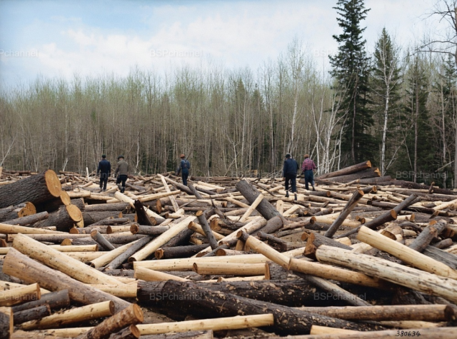 20. Лесорубы ходят по заготовленным брёвнам. США, Литтлфорк, Миннесота, 28 апреля 1937 года.