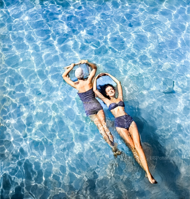 12. Модели в купальниках плавают в бассейне. США, 1948 год.