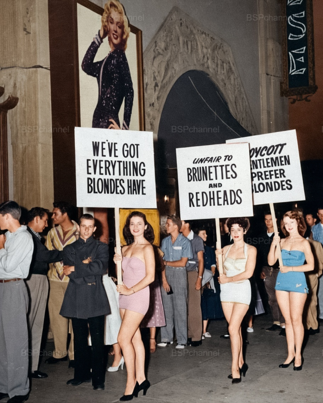 14. Организованный протестный марш в Голливуде, рекламирующий фильм 1953 года «Джентльмены предпочитают блондинок».
