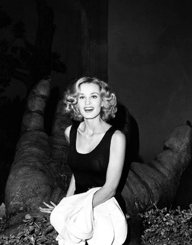 7. Модель и актриса Джессика Лэнг во время съёмок фильма "Кинг-Конг" в перерыве между дублями, 1976 год