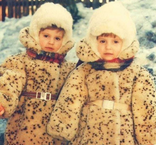 6. Модные близнецы на зимней прогулке, СССР, 1970-е гг.