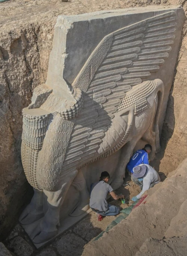8. Массивная 18-тонная статуя ассирийского божества, которой 2700 лет, была раскопана в Ираке в ноябре 2023 года