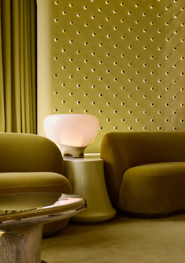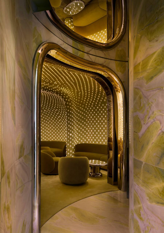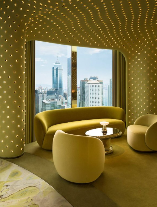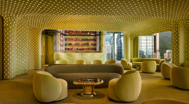 На 38-м этаже нового небоскрёба The Henderson в Гонконге начал работу бар Peridot, выполненный в футуристичной эстетике. Интерьер пространства, созданный канадской студией Studio Paolo Ferrari, оформлен в тёплых оливковых оттенках и напоминает «кокон» с панорамным видом на город. Здание башни спроектировано бюро Zaha Hadid Architects и уже стало заметным событием для Гонконга. В городе, где в последние годы возведение новых небоскрёбов замедлилось, проект The Henderson выделяется на фоне текущей застройки.