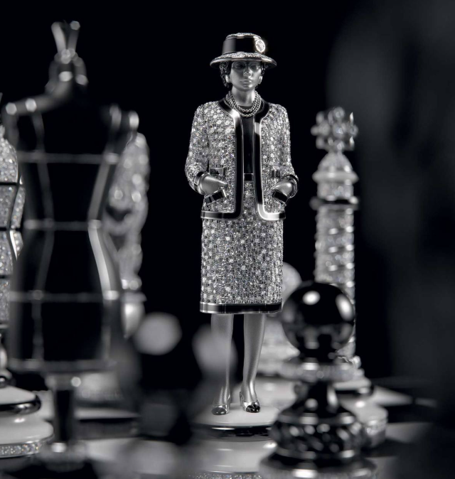 Модный дом Chanel показал эксклюзивный арт-объект Coco Game - шахматный набор, созданный как предмет роскоши и коллекционного дизайна. Доска выполнена из керамики и обсидиана с элементами белого золота и украшена тысячами бриллиантов. В комплект входят 32 фигуры, каждая из которых задумывалась как самостоятельный дизайнерский объект. Внутри фигур королев скрыты часы, а отдельные элементы можно использовать как украшения. Стоимость набора оценивается примерно в 4 миллиона долларов, подчёркивая его статус подарка «для тех, у кого уже всё есть».
