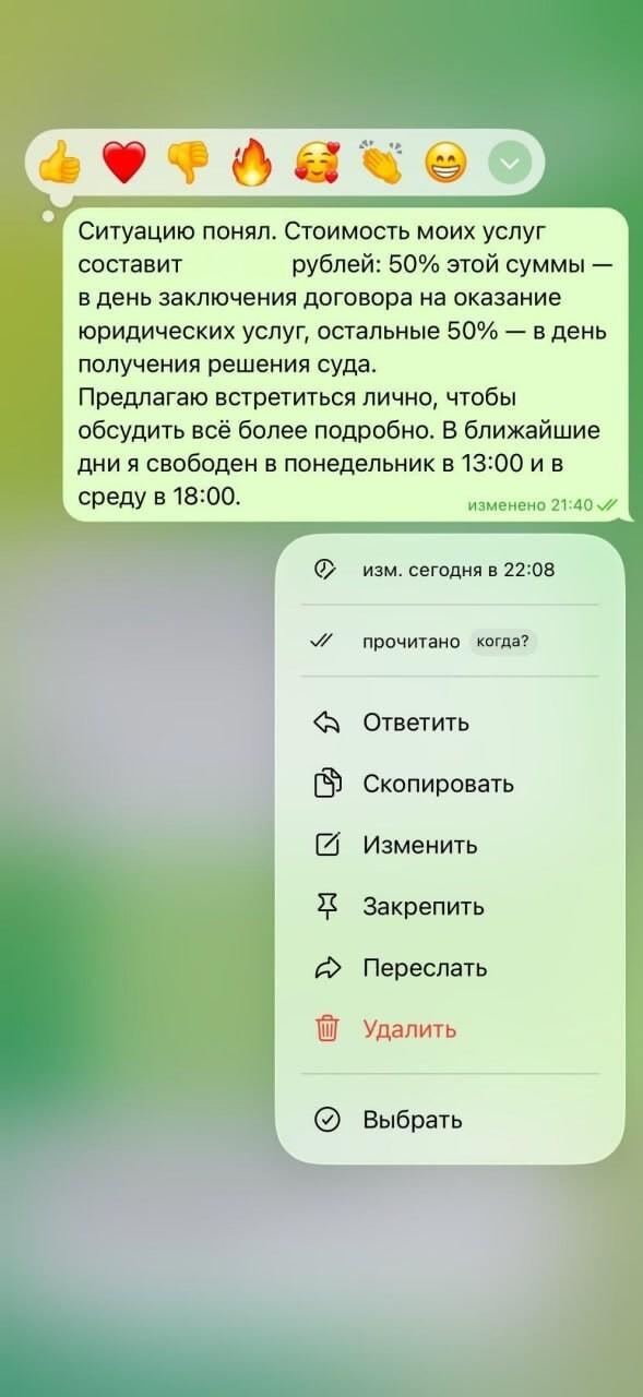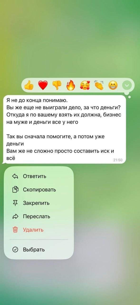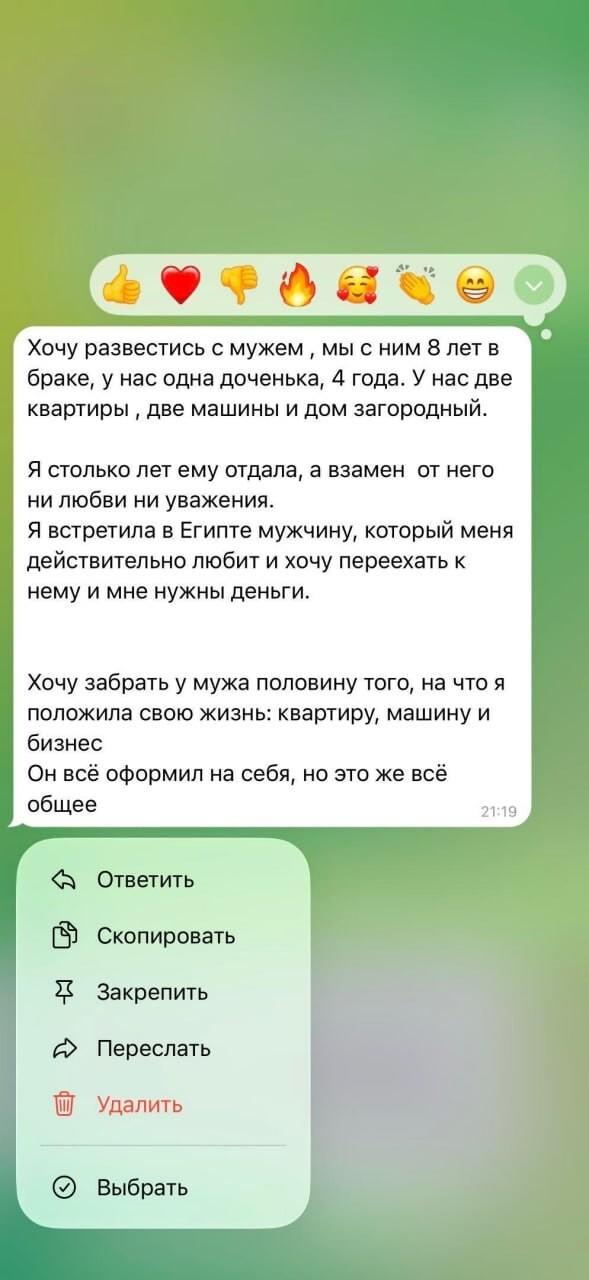Юрист опубликовал фрагменты переписки, в которой обсуждается конфликт бывших супругов при разделе денег после расставания. По его словам, женщина требовала значительную часть совместных средств, несмотря на новые отношения, а также отказывалась покрывать часть расходов, связанных с процессом.